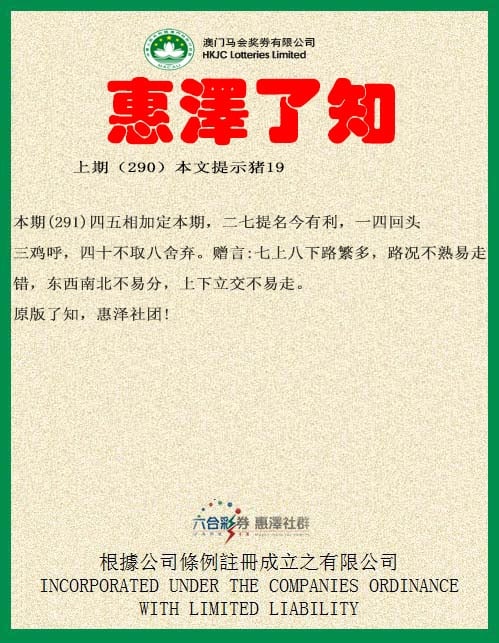 【惠泽了知】291期四五相加定本期,二七提名今有利,一四回头三鸡呼,四十不取八舍弃。赠言:七上八下路繁多,路况不熟易走错,东西南北不易分,上下立交不易走?